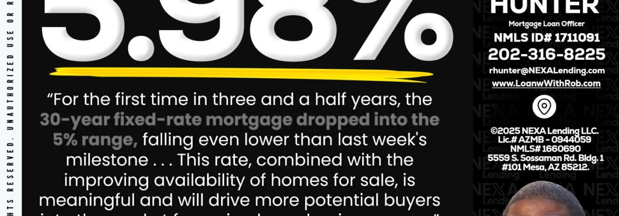 Hi, my name is Robert Hunter. I’m a Loan Officer with NEXA Lending LLC., offering personalized mortgage solutions, fast customized quotes, great rates and service with integrity.