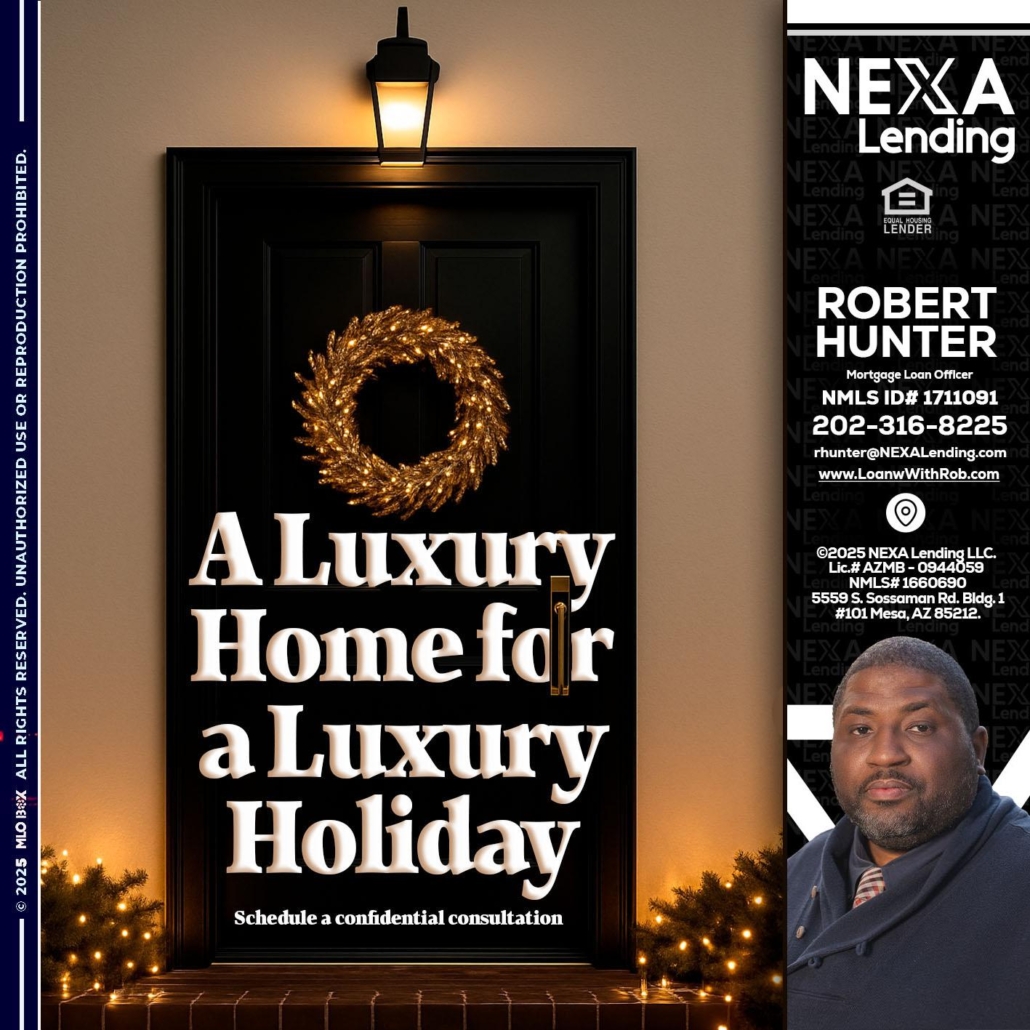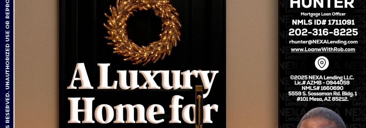 A LUXURY HOME - Robert Hunter -Mortgage Loan OfficerHi, my name is Robert Hunter. I’m a Loan Officer with NEXA Lending LLC., offering personalized mortgage solutions, fast customized quotes, great rates and service with integrity.
