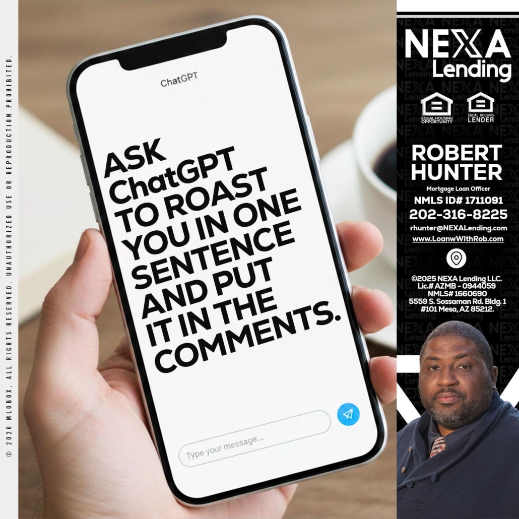 Hi, my name is Robert Hunter. I’m a Loan Officer with NEXA Lending LLC., offering personalized mortgage solutions, fast customized quotes, great rates and service with integrity.