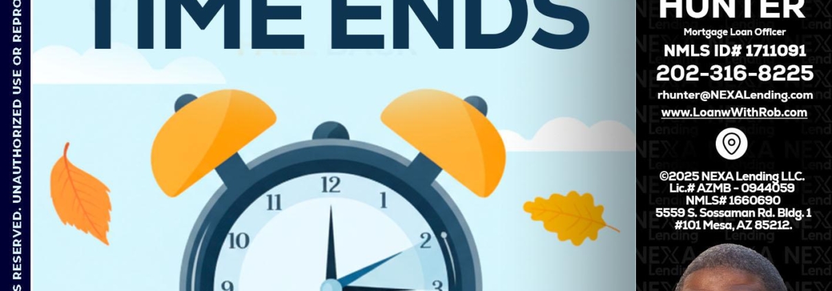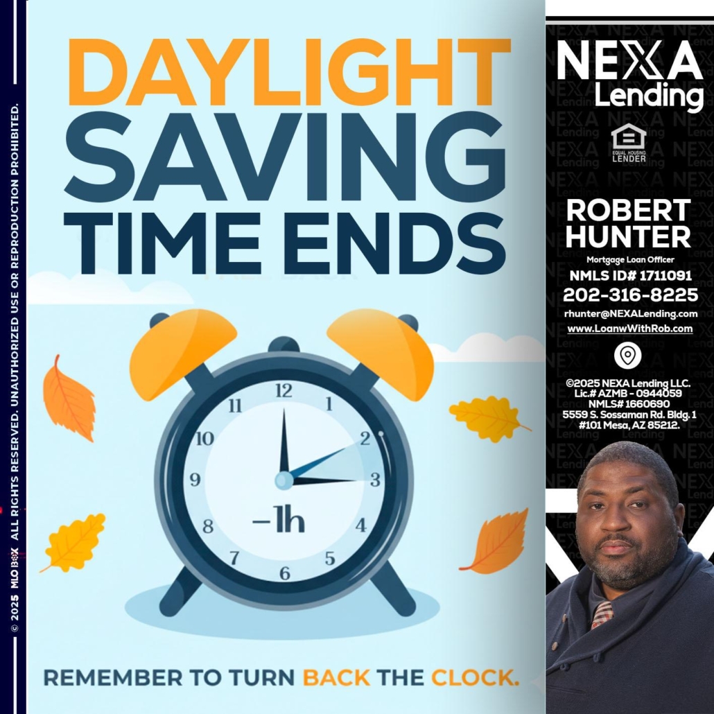 daylight saving - Robert Hunter -Mortgage Loan OfficerHi, my name is Robert Hunter. I’m a Loan Officer with NEXA Mortgage LLC., offering personalized mortgage solutions, fast customized quotes, great rates and service with integrity.