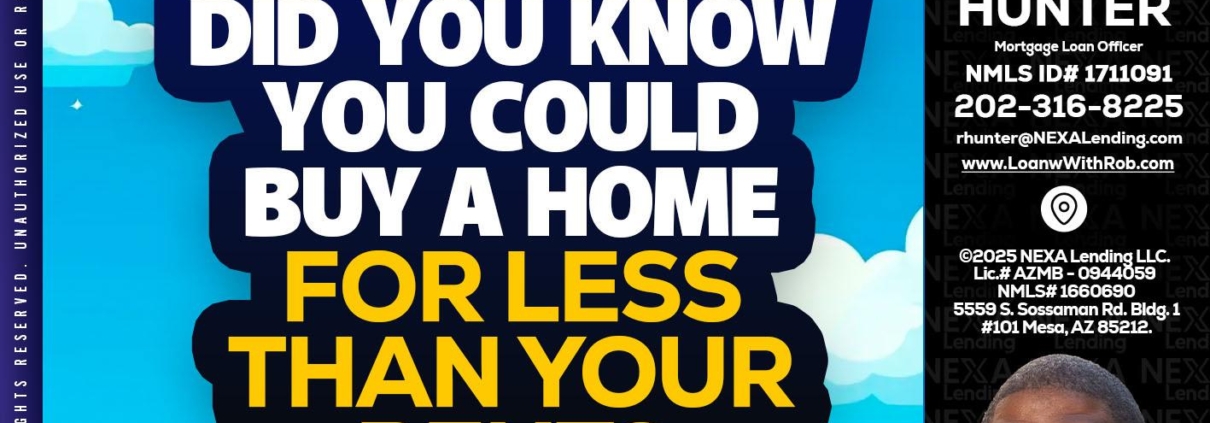 Hi, my name is Robert Hunter. I’m a Loan Officer with NEXA Lending LLC., offering personalized mortgage solutions, fast customized quotes, great rates and service with integrity.