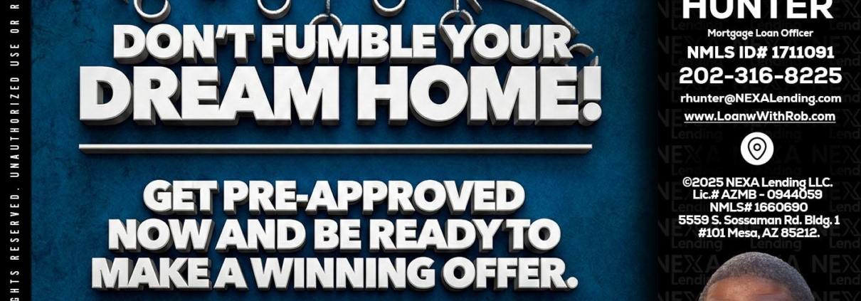 Hi, my name is Robert Hunter. I’m a Loan Officer with NEXA Lending LLC., offering personalized mortgage solutions, fast customized quotes, great rates and service with integrity.