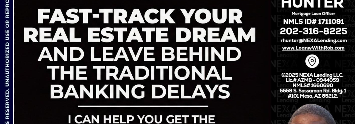 Hi, my name is Robert Hunter. I’m a Loan Officer with NEXA Lending LLC., offering personalized mortgage solutions, fast customized quotes, great rates and service with integrity.