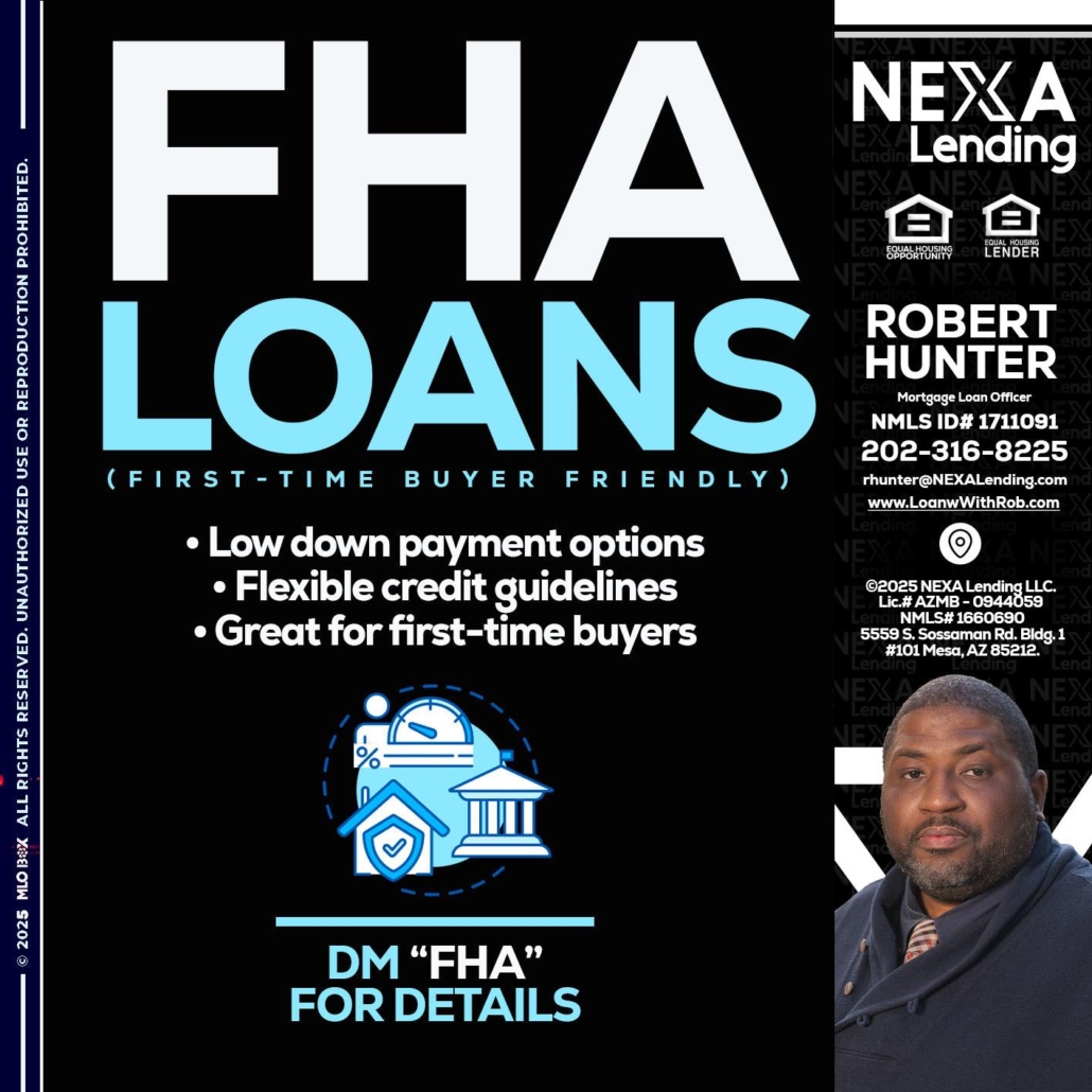 Hi, my name is Robert Hunter. I’m a Loan Officer with NEXA Lending LLC., offering personalized mortgage solutions, fast customized quotes, great rates and service with integrity.