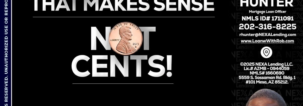Hi, my name is Robert Hunter. I’m a Loan Officer with NEXA Lending LLC., offering personalized mortgage solutions, fast customized quotes, great rates and service with integrity.