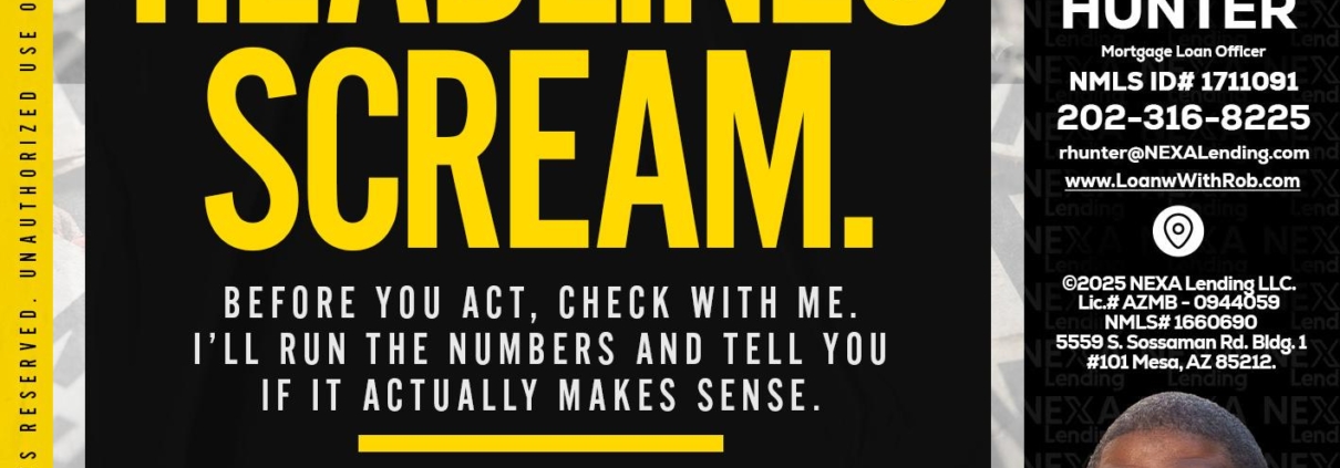 Hi, my name is Robert Hunter. I’m a Loan Officer with NEXA Lending LLC., offering personalized mortgage solutions, fast customized quotes, great rates and service with integrity.