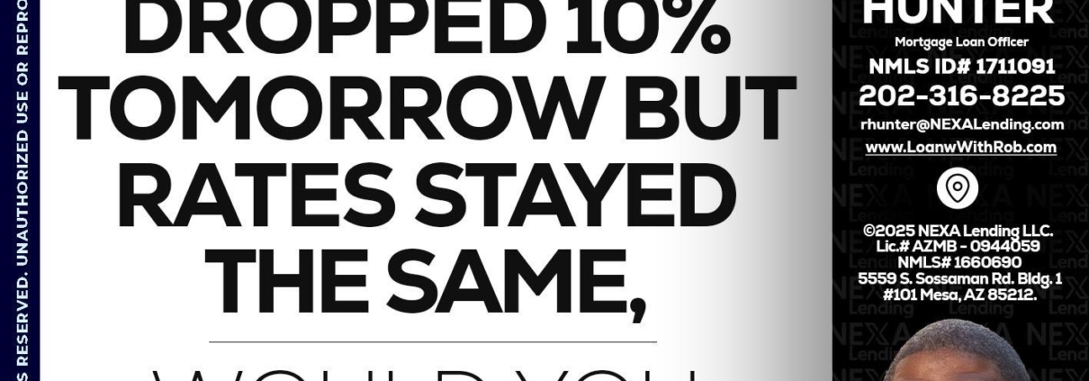 Hi, my name is Robert Hunter. I’m a Loan Officer with NEXA Mortgage LLC., offering personalized mortgage solutions, fast customized quotes, great rates and service with integrity.