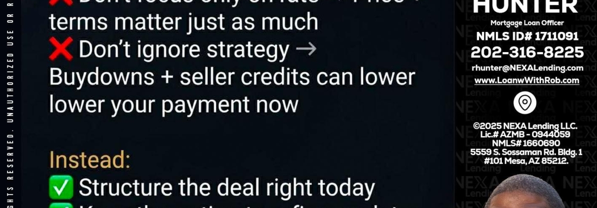Hi, my name is Robert Hunter. I’m a Loan Officer with NEXA Lending LLC., offering personalized mortgage solutions, fast customized quotes, great rates and service with integrity.