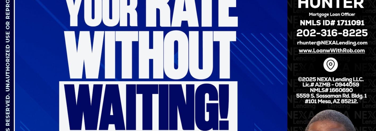 Hi, my name is Robert Hunter. I’m a Loan Officer with NEXA Mortgage LLC., offering personalized mortgage solutions, fast customized quotes, great rates and service with integrity.