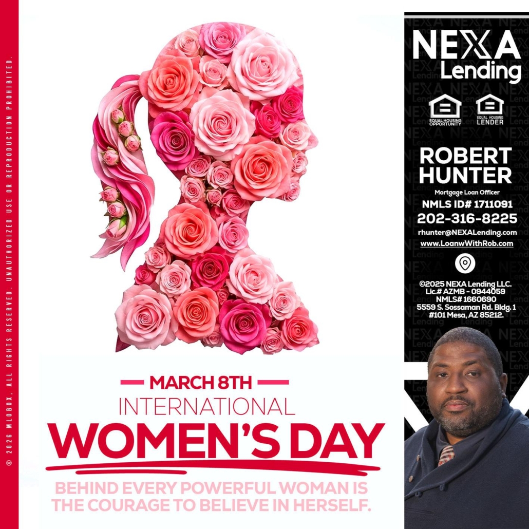MARCH 8TH - Robert Hunter -Mortgage Loan OfficerHi, my name is Robert Hunter. I’m a Loan Officer with NEXA Lending LLC., offering personalized mortgage solutions, fast customized quotes, great rates and service with integrity.