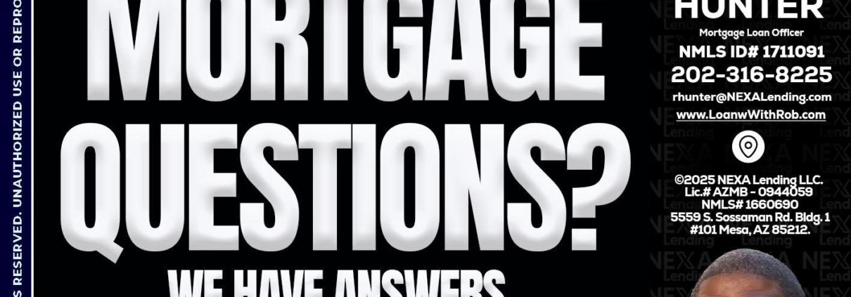 mortgage questions - Robert Hunter -Mortgage Loan OfficerHi, my name is Robert Hunter. I’m a Loan Officer with NEXA Mortgage LLC., offering personalized mortgage solutions, fast customized quotes, great rates and service with integrity.