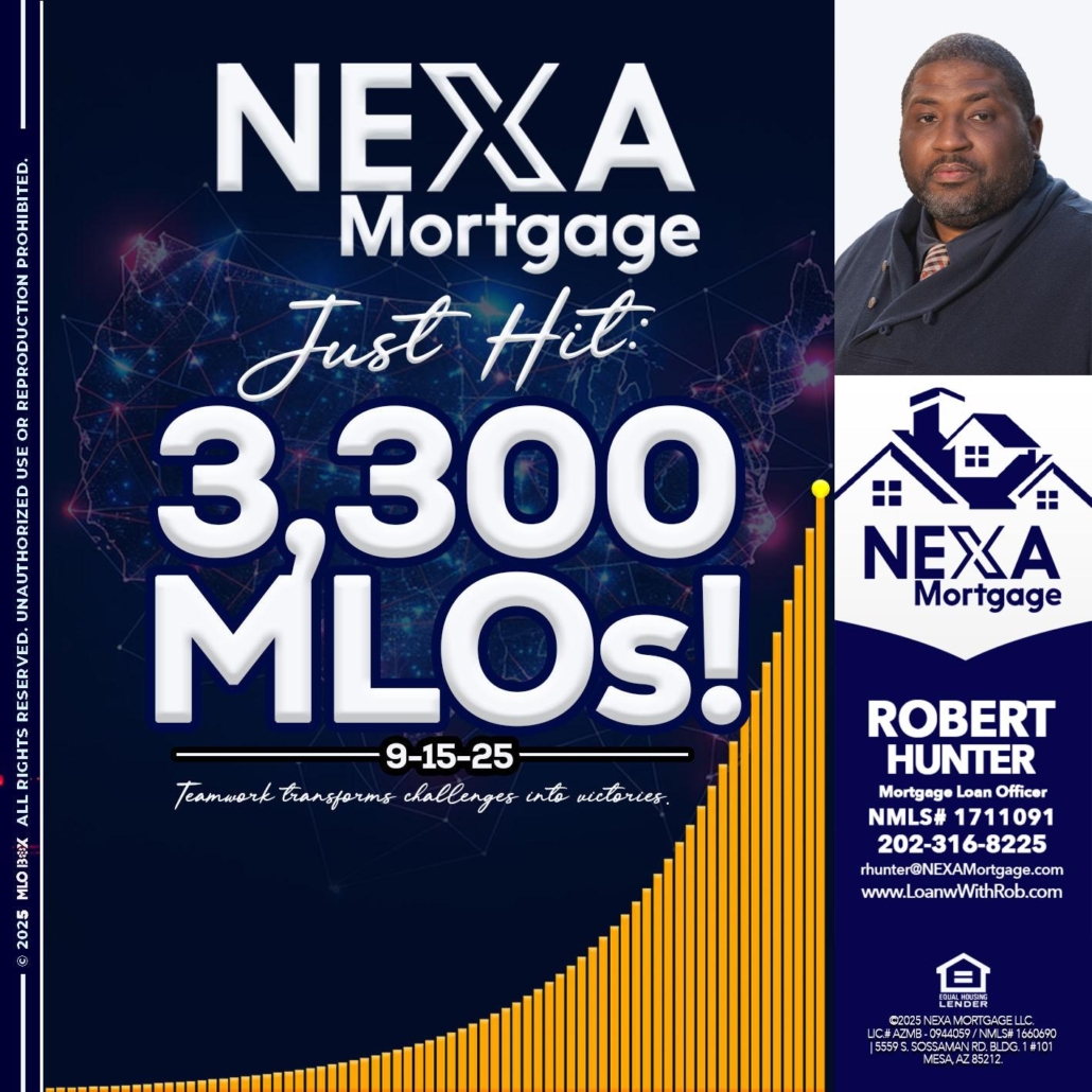 Hi, my name is Robert Hunter. I’m a Loan Officer with NEXA Mortgage LLC., offering personalized mortgage solutions, fast customized quotes, great rates and service with integrity.