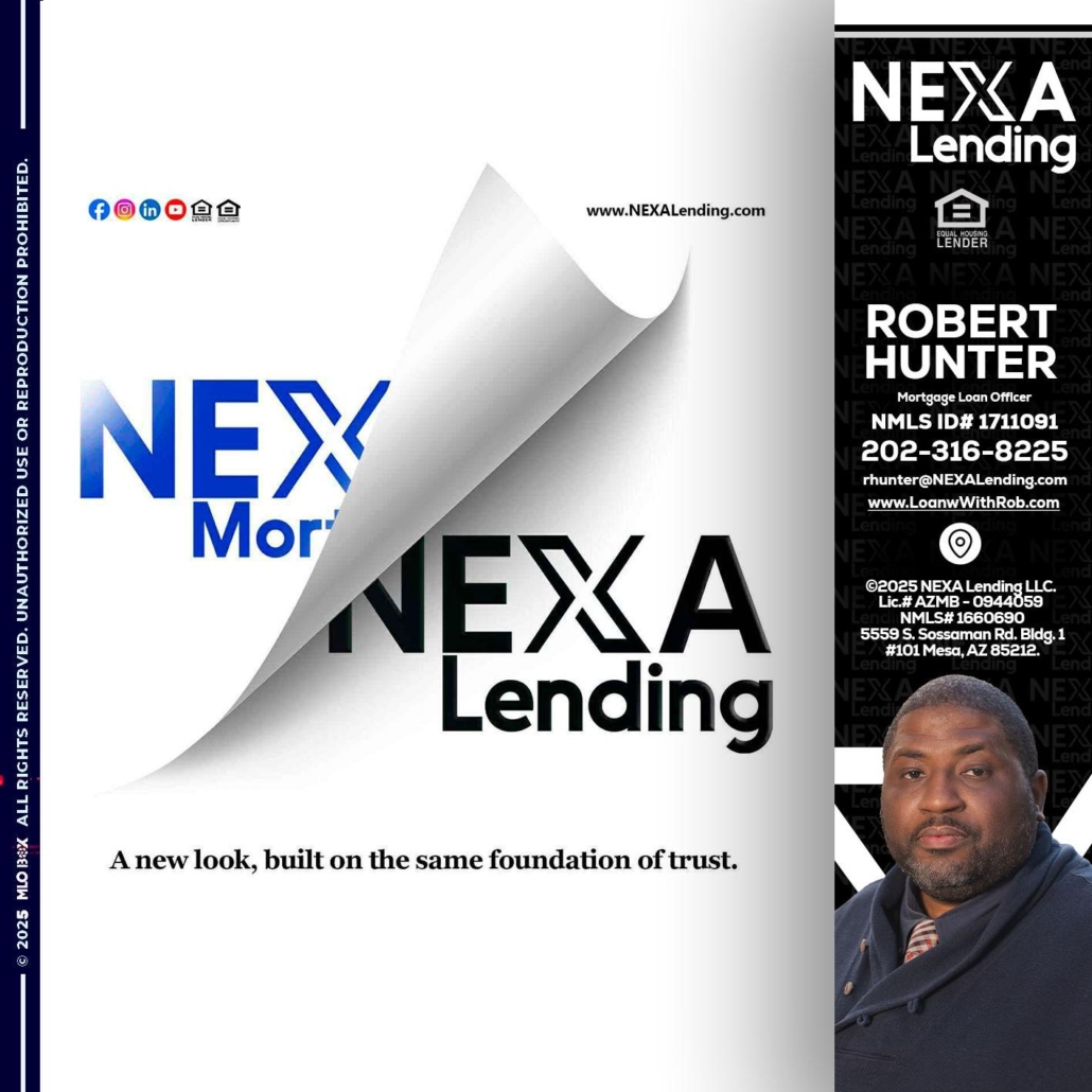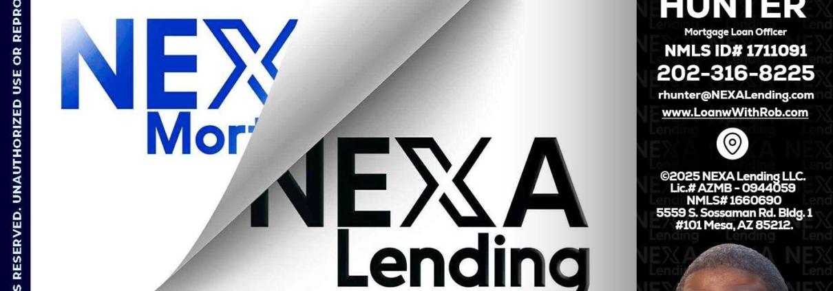 NEXA LENDING - Robert Hunter -Mortgage Loan OfficerHi, my name is Robert Hunter. I’m a Loan Officer with NEXA Mortgage LLC., offering personalized mortgage solutions, fast customized quotes, great rates and service with integrity.