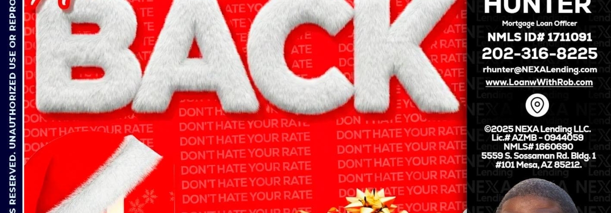 refis are back - Robert Hunter -Mortgage Loan OfficerHi, my name is Robert Hunter. I’m a Loan Officer with NEXA Lending LLC., offering personalized mortgage solutions, fast customized quotes, great rates and service with integrity.