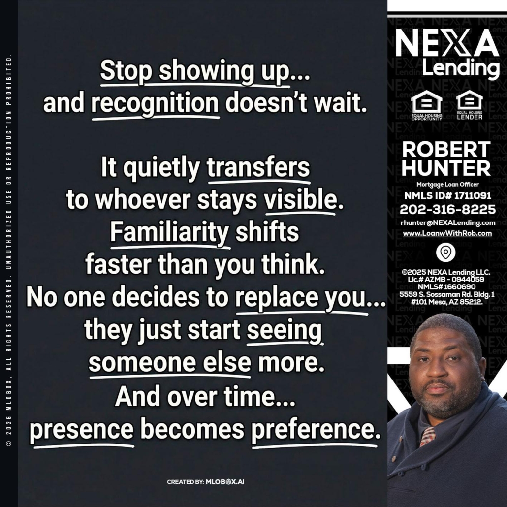 Hi, my name is Robert Hunter. I’m a Loan Officer with NEXA Lending LLC., offering personalized mortgage solutions, fast customized quotes, great rates and service with integrity.