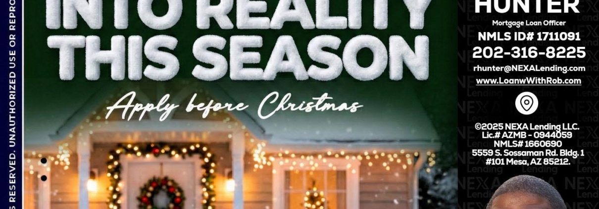 Hi, my name is Robert Hunter. I’m a Loan Officer with NEXA Lending LLC., offering personalized mortgage solutions, fast customized quotes, great rates and service with integrity.