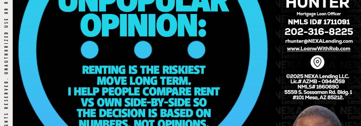 unpopular opinion - Robert Hunter -Mortgage Loan OfficerHi, my name is Robert Hunter. I’m a Loan Officer with NEXA Lending LLC., offering personalized mortgage solutions, fast customized quotes, great rates and service with integrity.